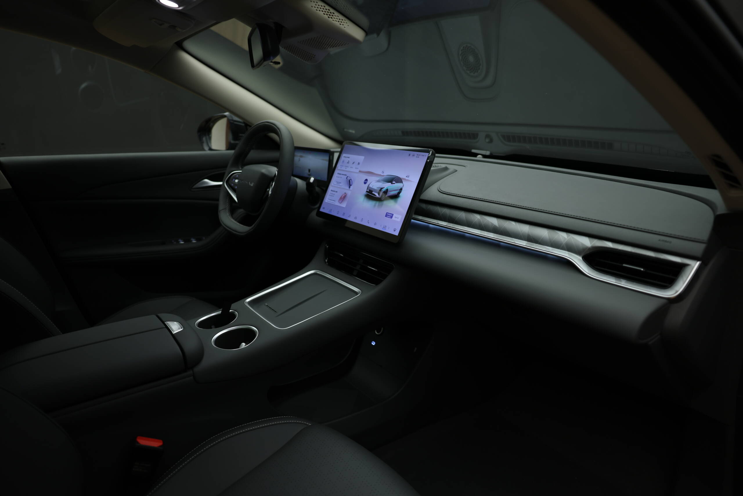 The car’s exterior design features smooth and dynamic lines, with a modern front fascia and a unique full-width rear light bar. Inside, the cabin is designed to provide a comfortable and premium driving environment, with very comfortable seating and a large central touchscreen. The car is equipped with the latest infotainment and driver-assistance systems to ensure a pleasant and effortless driving experience.